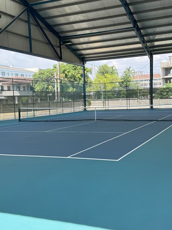 Spinning J International Tennis Academy is a private tennis school with 2 covered hard courts availble for rent located in Bang Na, Bangkok.